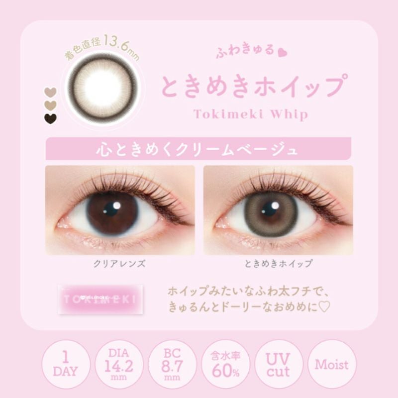 他の画像を見る 【即日発送OK♪】 EverColor1day MILIMORE エバーカラーワンデーミリモア ときめきホイップ(1箱10枚入り) 送料無料 即日発送 ネコポス UVカット うるおい成分 ナチュラル 色素薄い系 ブラウン ベージュ 1day DIA14.2mm 着色直径13.6㎜ BC8.7mm 含水率60% フチあり 販売価格 ¥ 1,694 税込 カートに入れる お気に入りに登録する