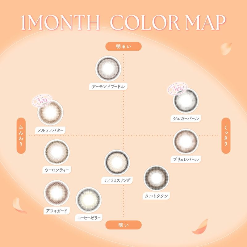 他の画像を見る 【即日発送OK♪】 feliamo 1MONTH フェリアモマンスリー タルトタタン(1箱2枚入り) 送料無料 即日発送 ネコポス UVカット ナチュラル ブラウン 1ヶ月 DIA14.5mm 着色直径13.7㎜ BC8.6mm 含水率38% フチあり 販売価格 ¥ 1,650 税込 カートに入れる お気に入りに登録する