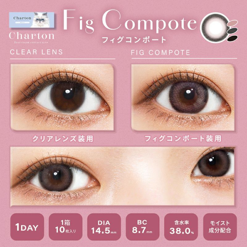 他の画像を見る 【即日発送OK♪】 Charton シャルトン フィグコンポート(1箱10枚) 送料無料 即日発送 ネコポス うるおい成分 ナチュラル ピンク 1day DIA14.5mm 着色直径13.8㎜ BC8.7mm 含水率38% フチあり 販売価格 ¥ 1,760 税込 カートに入れる お気に入りに登録する