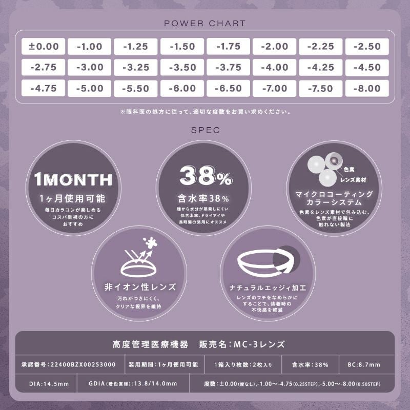 他の画像を見る 【即日発送NG】 Charton 1month シャルトンワンマンス チュロクレープ(1箱2枚入り) 送料無料 ネコポス うるおい成分 ナチュラル 色素薄い系 ブラウン グレー グレージュ 1ヶ月 DIA14.5mm 着色直径13.8㎜ BC8.7mm 含水率38% フチあり 販売価格 ¥ 1,650 税込 カートに入れる お気に入りに登録する