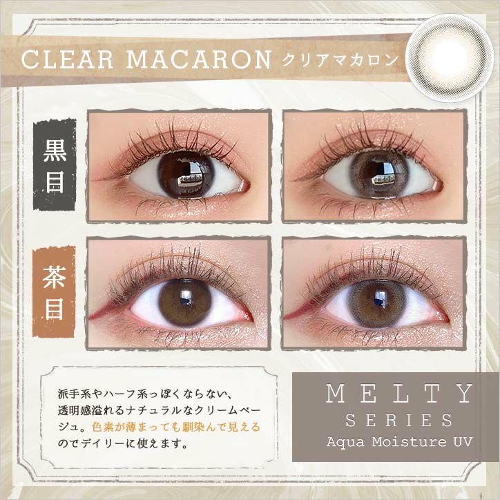 他の画像を見る 【即日発送OK♪】 お試し用♪LARME MELTY SERIES ラルムメルティシリーズ クリアマカロン(1箱2枚入り) 送料無料 即日発送 ネコポス UVカット うるおい成分 ナチュラル 色素薄い系 ブラウン 1day DIA14.5mm 着色直径13.8㎜ BC8.6mm 含水率58% フチあり 3箱同時購入で1箱分無料! 販売価格 ¥ 550 税込 カートに入れる お気に入りに登録する