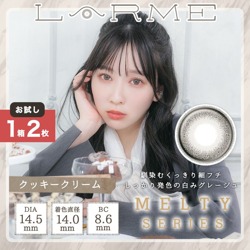 他の画像を見る 【即日発送OK♪】 お試し用♪LARME MELTY SERIES ラルムメルティシリーズ クッキークリーム(1箱2枚入り) 送料無料 即日発送 ネコポス UVカット うるおい成分 ナチュラル ハーフ瞳 色素薄い系 グレー 1day DIA14.5mm 着色直径14.0㎜以上 BC8.6mm 含水率58% フチあり 3箱同時購入で1箱分無料! 販売価格 ¥ 550 税込 カートに入れる お気に入りに登録する