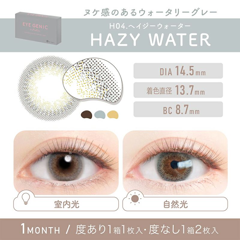 他の画像を見る 【即日発送OK♪】 《度なし》EYEGENIC by EverColor アイジェニック by エバーカラー ヘイジーウォーター(1箱2枚入り) 送料無料 即日発送 ネコポス 度なしのみ ハーフ瞳 グレー ブルー 1ヶ月 DIA14.5mm 着色直径13.7㎜ BC8.7mm 含水率38.5% 販売価格 ¥ 1,650 税込 カートに入れる お気に入りに登録する