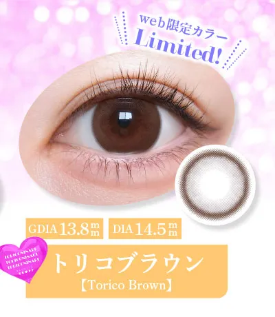 他の画像を見る 【12月中旬頃発売予定♪】 トリコニナルワンデー 涙目ブラウン(1箱10枚入り) 送料無料 ネコポス UVカット うるおい成分 ナチュラル ブラウン 1day DIA14.2mm 着色直径13.6㎜ BC8.7mm 含水率58% 販売価格 ¥ 1,650 税込 カートに入れる お気に入りに登録する