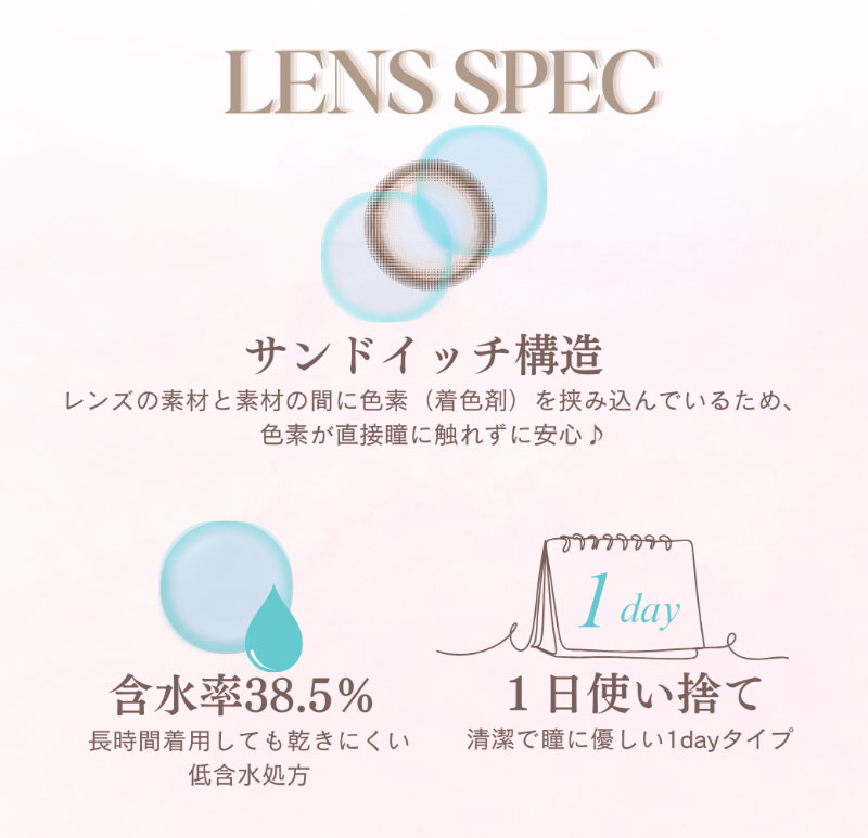 他の画像を見る 【即日発送OK♪】 meilly メイリー シフォンピンク(1箱10枚入り) 送料無料 即日発送 ネコポス ナチュラル 色素薄い系 ブラウン ピンク DIA14.2mm 着色直径13.3㎜ BC8.7mm 含水率38.5% フチあり 販売価格 ¥ 1,760 税込 カートに入れる お気に入りに登録する