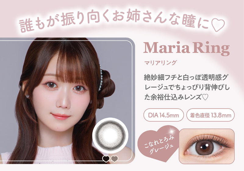 他の画像を見る 【即日発送OK♪】 melady ミレディ マリアリング(1箱10枚入り) 送料無料 即日発送 ネコポス UVカット ナチュラル 色素薄い系 ブラウン グレージュ 1day DIA14.5mm 着色直径13.8㎜ BC8.6mm 含水率55% フチあり 販売価格 ¥ 1,485 税込 カートに入れる お気に入りに登録する