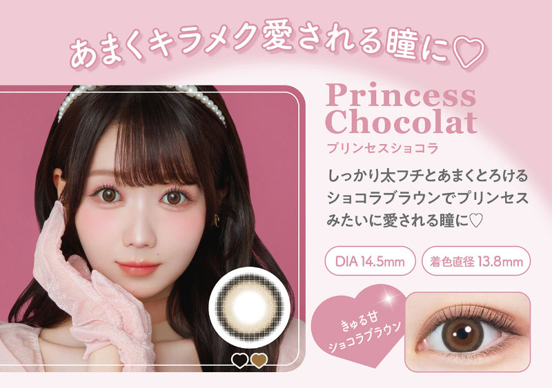 他の画像を見る 【即日発送OK♪】 melady ミレディ プリンセスショコラ(1箱10枚入り) 送料無料 即日発送 ネコポス UVカット ナチュラル ブラウン 1day DIA14.5mm 着色直径13.8㎜ BC8.6mm 含水率55% フチあり 販売価格 ¥ 1,485 税込 カートに入れる お気に入りに登録する
