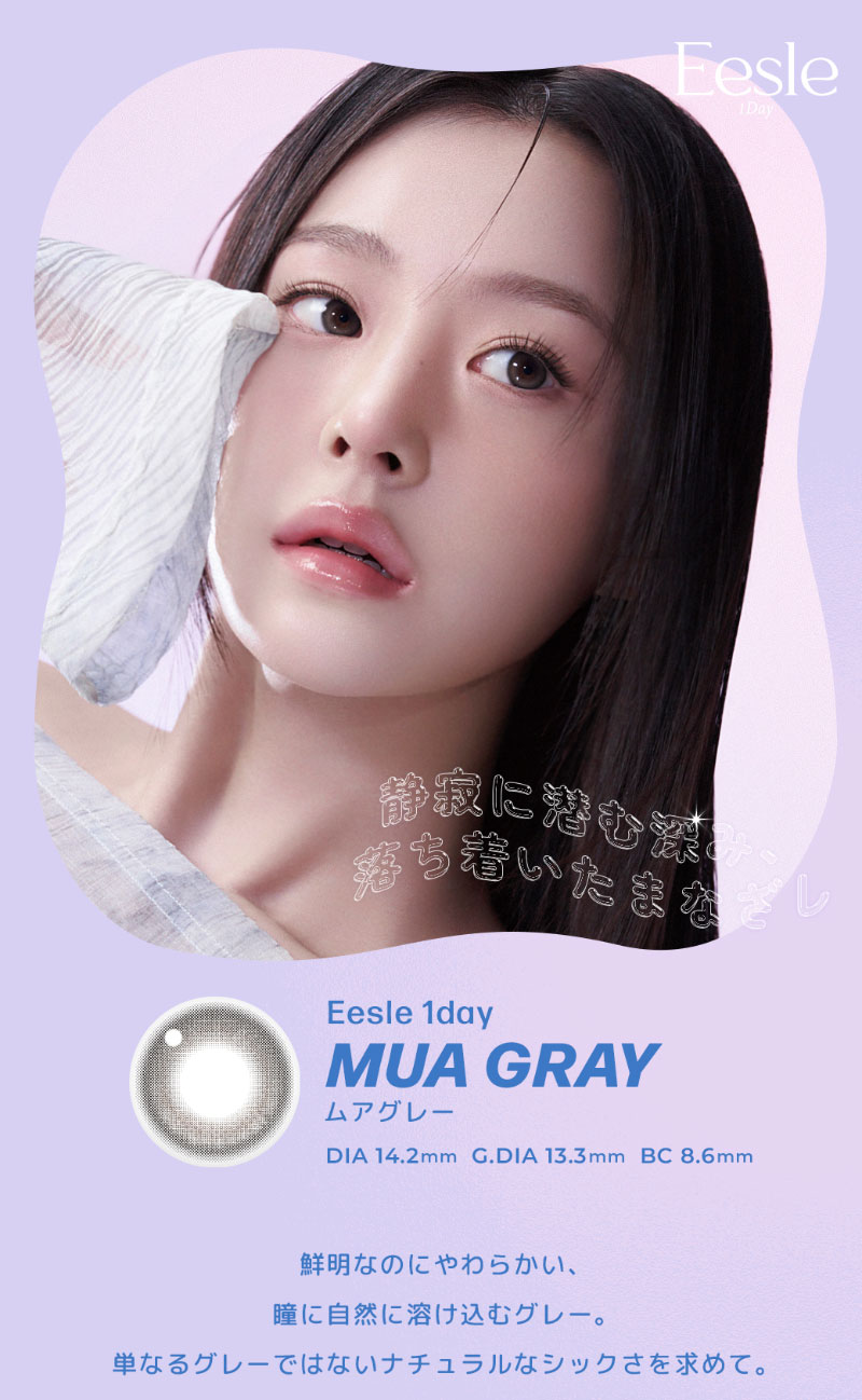 他の画像を見る 【即日発送OK♪】 Eesle 1day イスルワンデー ムアグレー(1箱10枚入り) 送料無料 即日発送 ネコポス ナチュラル 色素薄い系 グレー 1day DIA14.2mm 着色直径13.3㎜ BC8.6mm 含水率38.5% フチあり 販売価格 ¥ 1,890 税込 カートに入れる お気に入りに登録する