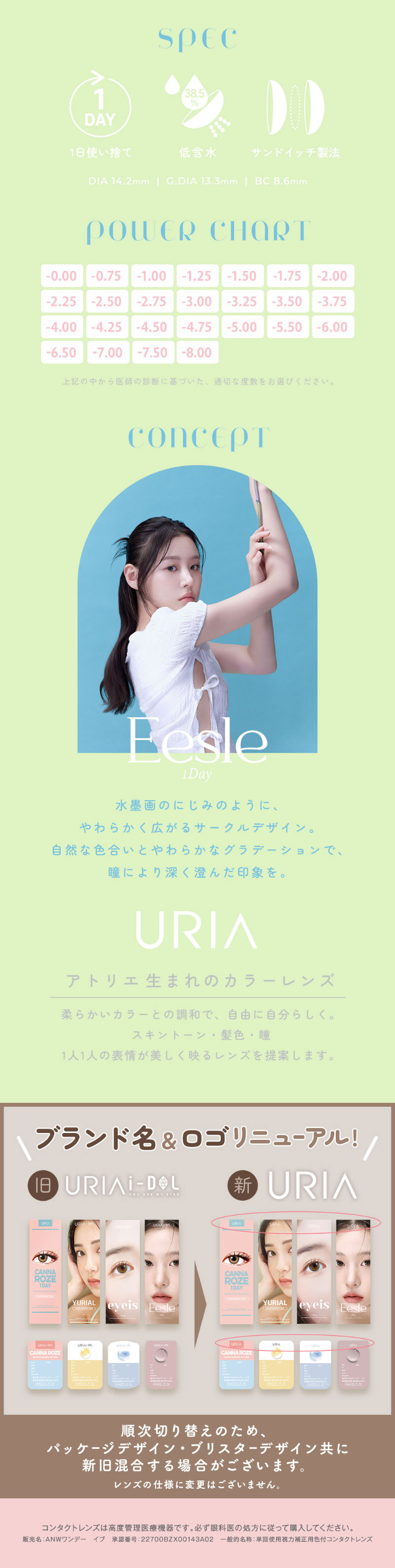 他の画像を見る 【即日発送OK♪】 Eesle 1day イスルワンデー スンスブラウン(1箱10枚入り) 送料無料 即日発送 ネコポス ナチュラル 色素薄い系 ブラウン 1day DIA14.2mm 着色直径13.3㎜ BC8.6mm 含水率38.5% フチあり 販売価格 ¥ 1,890 税込 カートに入れる お気に入りに登録する