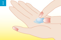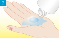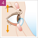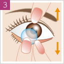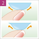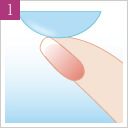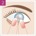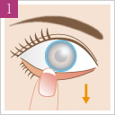 両目でまっすぐ前を見たまま、レンズを黒目の上に静かにのせます。レンズがきちんと黒目の上にのっている事を確認し、ゆっくりと指をはなします。