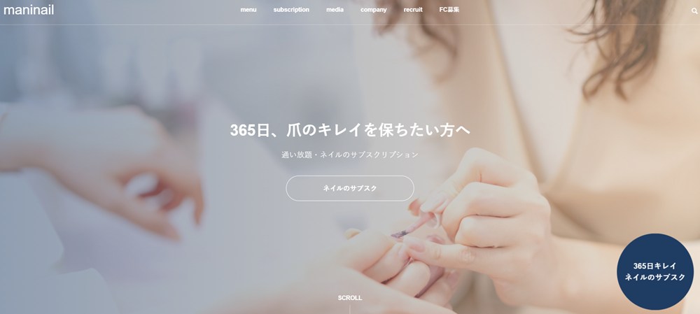 ネイルメニューに加え、ネイルのサブスクリプションサービスやオンラインショップも実施。「365日キレイ」をコンセプトに、いつでもどこでもネイルを楽しめるサービスを展開しています。