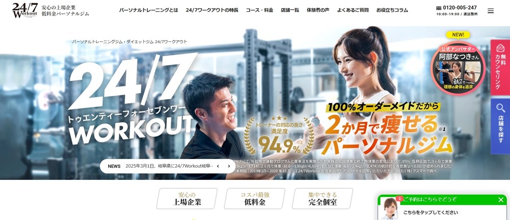 公式サイト:パーソナルトレーニングジム・ダイエットジム 24/7ワークアウト
