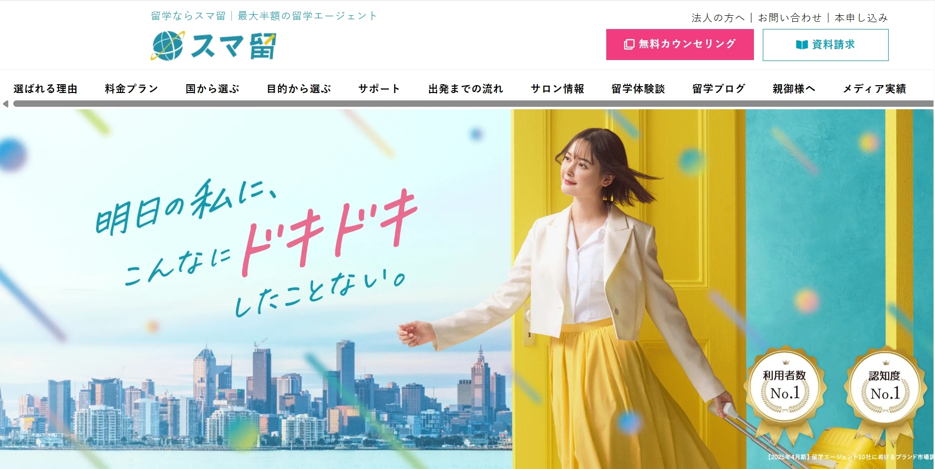 スマ留は、従来のサービスと同等の学習環境を保ちながら、「留学費用を最大半額」に抑えることをコンセプトにした留学エージェントです。