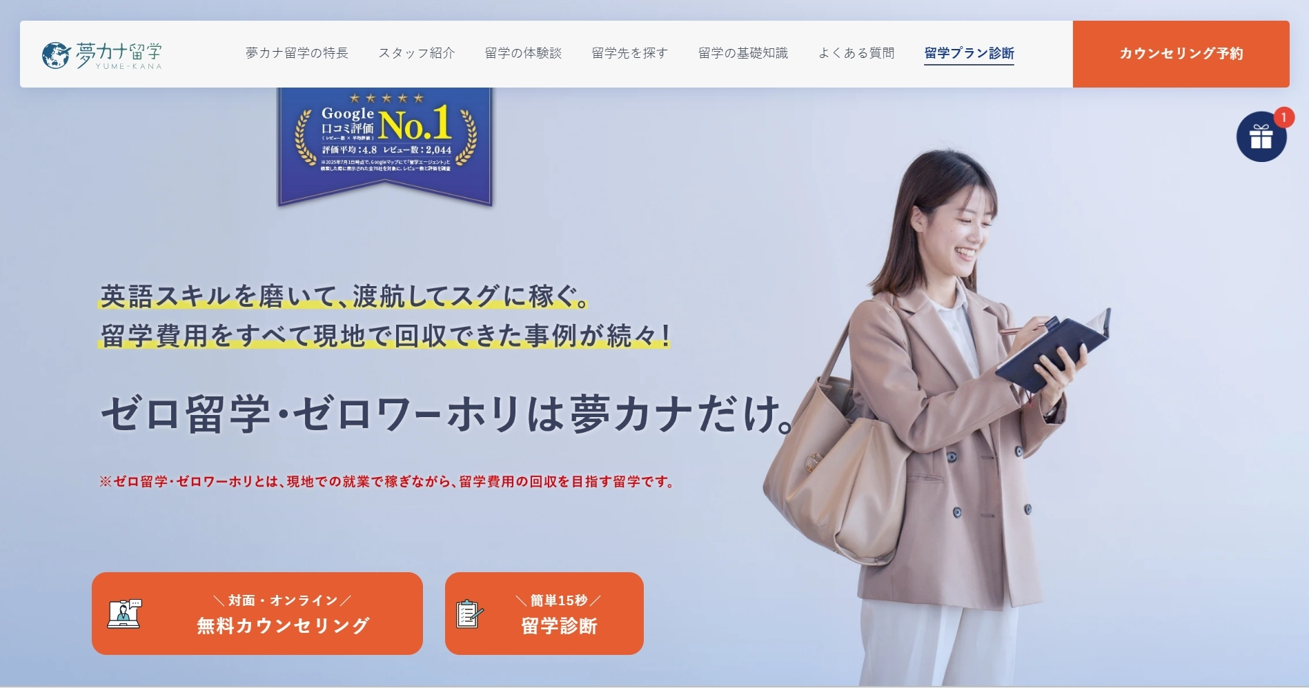 夢カナ留学は、プロのコンサルタントが個別にあなたの希望や目的を丁寧にヒアリングして、オーダーメイドの留学・ワーホリプランを提案する点が強みです。