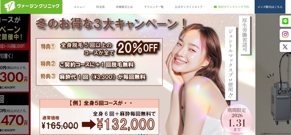 公式サイト:京都・福岡・広島の医療脱毛・美容皮膚科ヴァージンクリニック