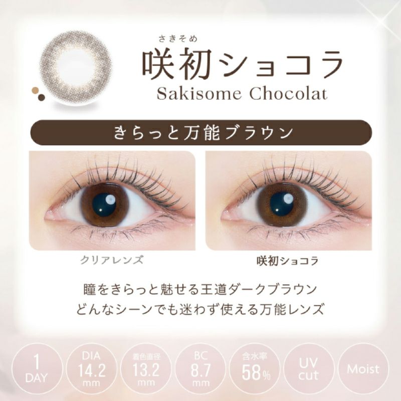 他の画像を見る 【即日発送OK♪】 Kaica カイカ 咲初ショコラ(1箱10枚入り) 送料無料 即日発送 ネコポス UVカット うるおい成分 ナチュラル ブラウン 1day DIA14.2mm 着色直径13.2㎜ BC8.7mm 含水率58% 3箱同時購入で超得 販売価格 ¥ 1,815 税込 カートに入れる お気に入りに登録する