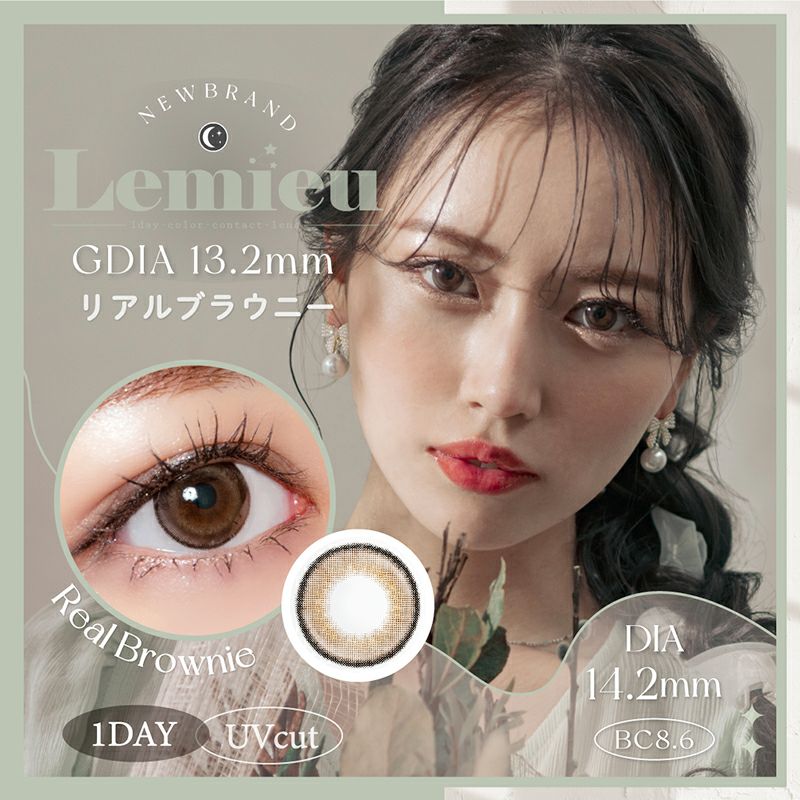 他の画像を見る 【即日発送NG】 Lemieu ルミュー リアルブラウニー(1箱10枚) 送料無料 ネコポス UVカット ナチュラル ブラウン 1day DIA14.2mm 着色直径13.2㎜ BC8.6mm 含水率38.5% フチあり 販売価格 ¥ 1,705 税込 カートに入れる お気に入りに登録する