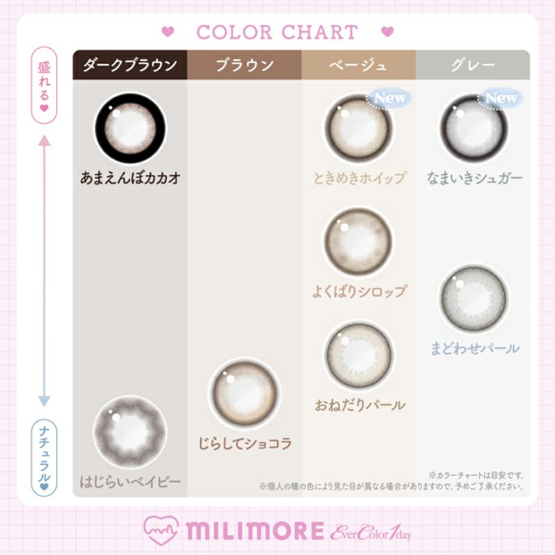 他の画像を見る 【即日発送OK♪】 EverColor1day MILIMORE エバーカラーワンデーミリモア まどわせパール(1箱10枚入り) 送料無料 即日発送 ネコポス UVカット うるおい成分 ナチュラル 色素薄い系 グレー 1day DIA14.2mm 着色直径13.1㎜ BC8.7mm 含水率60% フチあり 販売価格 ¥ 1,694 税込 カートに入れる お気に入りに登録する