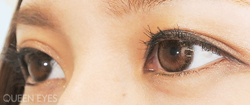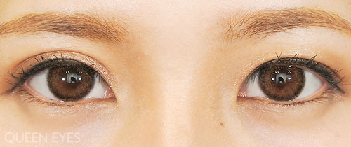 思ったよりも瞳の大きさは変わりません!かなりフチがぼかしてるのでしょうか?裸眼より落ち着いたブラウンでとても優しい印象になりました。すべてドットで構成されたデザインなのでかなりナチュラルです。ナチュラルカラコンが好きな方にオススメ!