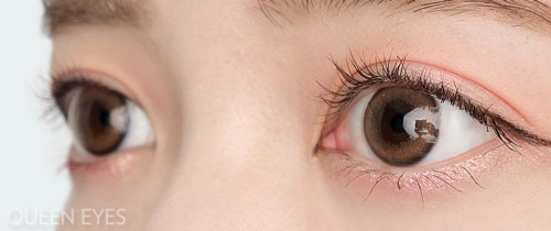 くすみのあるグリーンやピンク系のカラーでも”瞳に溶け込むように馴染む”レンズデザイン