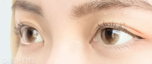瞳をやわらかく盛るブラウンフチのニュアンスハーフレンズ。