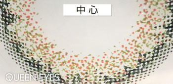 外周部はドットのひとつひとつが外側に向かって小さくなるよう仕上げることにより、より自然で大きな瞳を演出♪