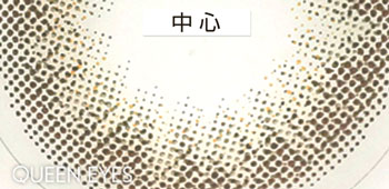 少しオリーブがかったブラウン系カラコンに見えます。オリーブの発色は控えめなのでクセのないグリーン系カラコンです。中心のオレンジはドットがかなり小さいのに分かりやすいから意外でした!装着するとイエローっぽく見えます。ブラウンのフチはふわっと白目に馴染んでいて、中心も黒目と上手く馴染んでるように見えます。写真で見るとフチの発色に少しムラがあるのが気になりました。