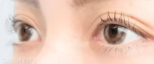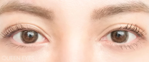 裸眼と比べると大きくなっていますが、大きいなとは感じません。着色直径13.0mmですが体感だと着色直径13.3mmくらいです。レンズ直径14.2mmのカラコンとしては小ぶりに感じました。裸眼に比べるとアッシュ味のある茶目にも見えるし、深みのあるオリーブにも見えます。