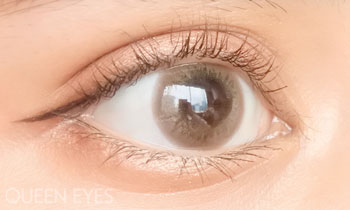 黒目をほんのりトーンアップするライトブラウンと相性抜群の抜け感カーキでウルウル感アップ。